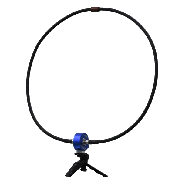 Die Schleifenantenne hat einen Durchmesser von 60 cm und besteht aus einem gewellten Koaxialkabel, das über N-Steckverbinder mit dem Wandler verbunden ist. Diese Konstruktion erlaubt eine flexible Anpassung für verschiedene Schleifendurchmesser. Die Antenne verfügt über ein ¼"-Gewinde, womit sie sich einfach auf Standard-Stativen befestigen lässt.